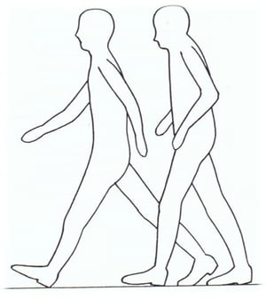 (左)正しい歩行姿(右)悪い歩行姿