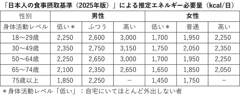 例えば、30代女性で運動量が少なめの筆者の場合、1日の摂取カロリーは約1,750kcalが目安です。PFCバランスの理想は炭水化物約1,050kcal、タンパク質約260kcal、脂質約440kcalとなります。