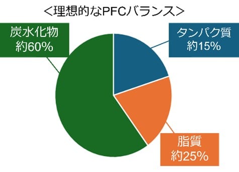 5大栄養素をバランスよく食べていても、食べ過ぎてしまうと血糖値に悪影響を及ぼします。まずは自分の1日に必要な摂取カロリーを知りましょう。さらに「PFCバランス」が整った食事を意識すると、より血糖値のコントロールがしやすくなります。PFCとは、P(タンパク質:Protein)、F(脂質:Fat)、C(炭水化物:Carbohydrate)の3つのエネルギー源のことで、1日分の摂取カロリーから各栄養素の理想の割合を決める指標です。