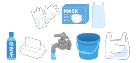 トイレ以外の場所で嘔吐したとき、どのように処理をしていますか?処理時は、まず自分の身を守ることが必須です。上述のとおり、そのまま放置しているとウイルス・細菌が付いたまま乾燥し、空気中に浮遊する恐れも。そのため嘔吐したあとは、感染対策に気をつけて、できる限り速やかに処理を行います。適切な処理のため、以下のものを準備しましょう。
